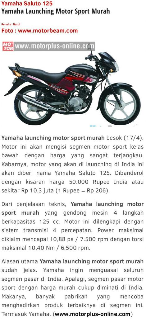 Motor Baru Yamaha Yamaha India Kenalkan Motor Sport Murah Solopos Com from images.solopos.com Terkait harga, yamaha byson saat ini berada dikisaran angka rp 6 jutaan. Salah satunya yaitu suzuki thunder yang menjadi model motor sport bekas paling murah, selain itu ada juga honda tiger dengan harga rp 10 jutaan dan bahkan untuk versi produksi tahun 2002 saja sudah bisa dibawa pulang dengan biaya hanya rp 8,5 juta. Banyak orang memilih motor dikarenakan lebih praktis dan harganya murah. Sedangkan yang banderolnya paling tinggi adalah yamaha r1m 2021 seharga rp 812 juta. Motor sport murah di bawah 10 juta yang paling laris Gua tuh orangnya paling se. Di daftar harga motor sport murah yang terakhir ada nama honda yang bisa jadi andalan. Find cars in kuala lumpur by my car motorsports sb on mudah.my.